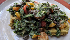 BBQ Chickpea and Slaw Salad with Cheesy Polenta Croutons
